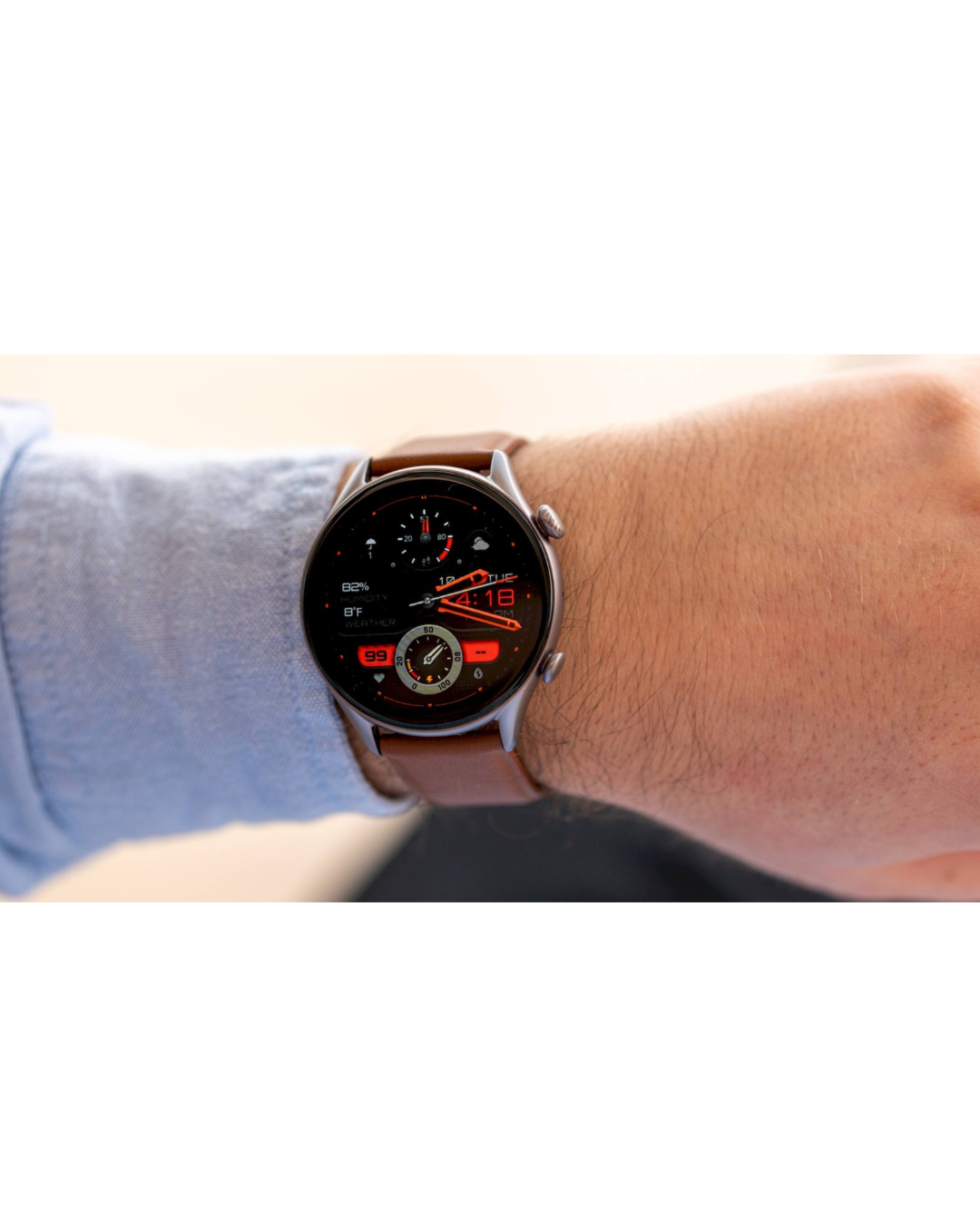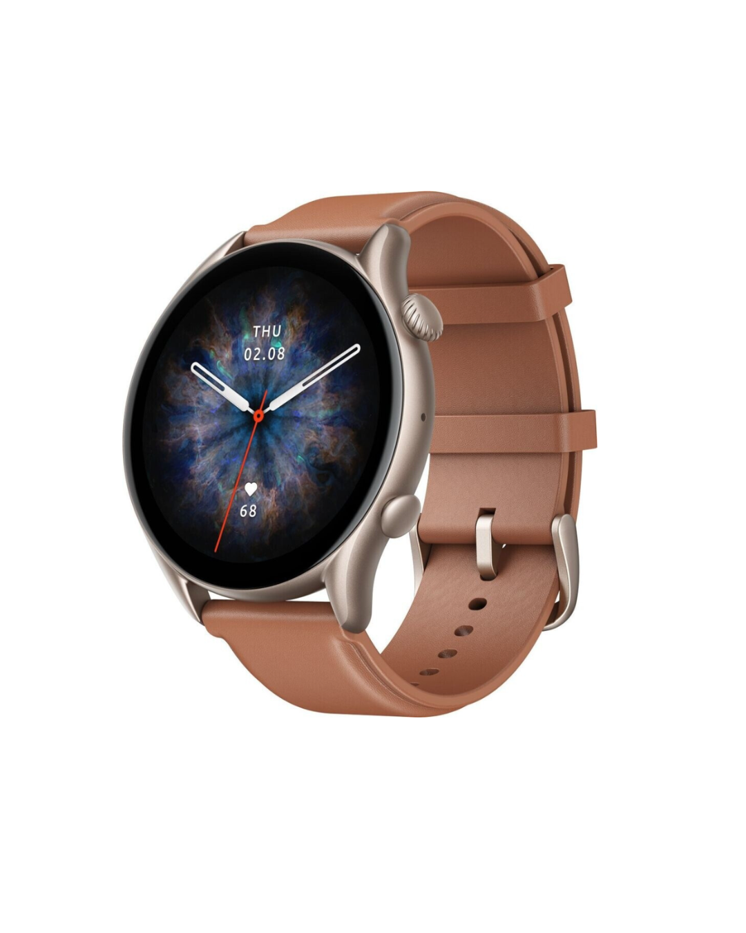 Amazfit GTR 3 Pro Brown je elegantna pametna ura z rjavim usnjenim paščkom, ki združuje klasičen videz ročne ure in napredne funkcije za spremljanje zdravja, športa ter vsakodnevnih aktivnosti. Primerna je za uporabnike, ki želijo pametno uro za fitnes, zdravje in poslovni stil, saj njen aluminijast okvir in okrogel zaslon delujeta zelo prestižno.